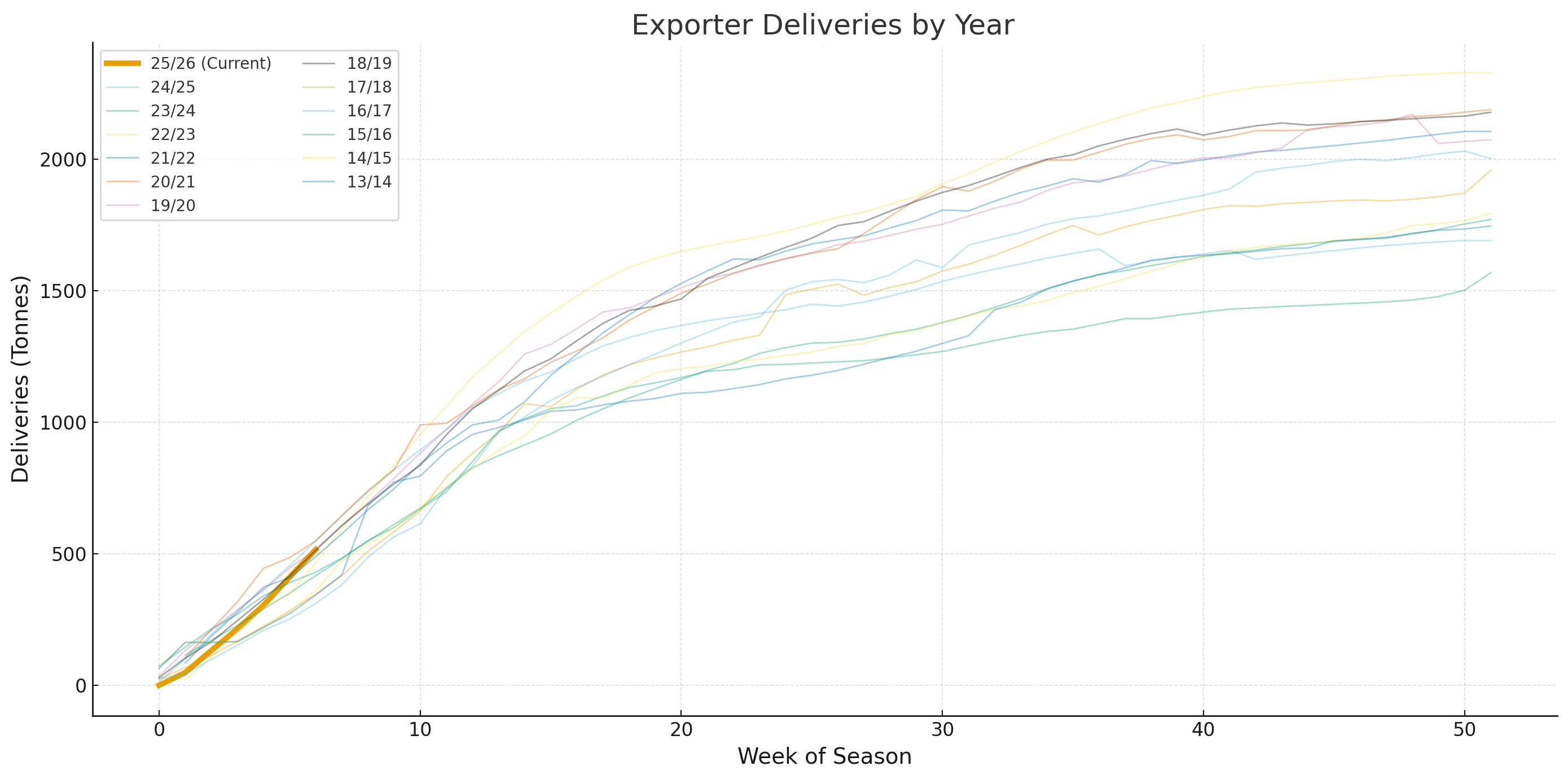 The discrepancy between weekly strength and cumulative lag says a lot: the crop is not booming, but neither is it collapsing. The market is learning to live with a slightly smaller, but not disastrous, 2025/26 main crop.