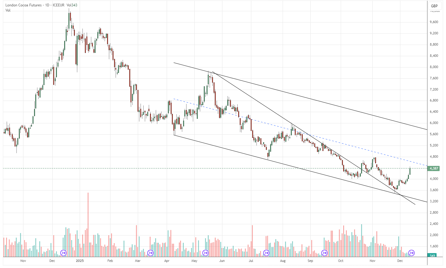 Reports also highlight rising concern over the mid-crop, which could suffer if dry-season conditions intensify. This comes as arrivals increasingly disappoint. The recent decline in Côte d’Ivoire’s weekly inflows, which fell below 100,000 tons in the Dec 1 to Dec 7 period, has traders questioning whether the weakness is temporary. Exporters remain liquidity-constrained, labour availability is limited, and farm maintenance is falling short of normal seasonal standards, reinforcing the market’s tightening supply narrative.